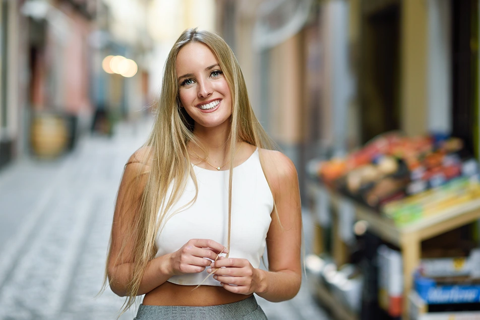 happy-woman-smiling-outdoors-natural-confidence     Smiling young woman standing outdoors, representing natural confidence and wellbeing